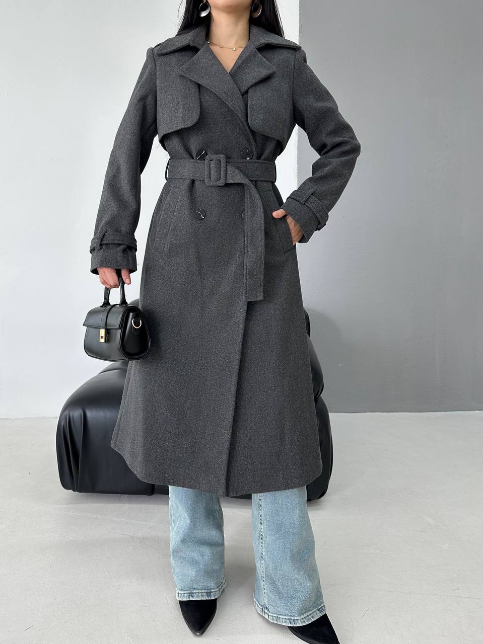 Modern çizgisi ve zarif duruşuyla bu kuşaklı kaşe kaban, soğuk günlerde stilinizi tamamlayacak en şık seçenek. Klasik kesimiyle hem ofis kombinlerinde hem günlük kullanımda mükemmel bir duruş sunar.