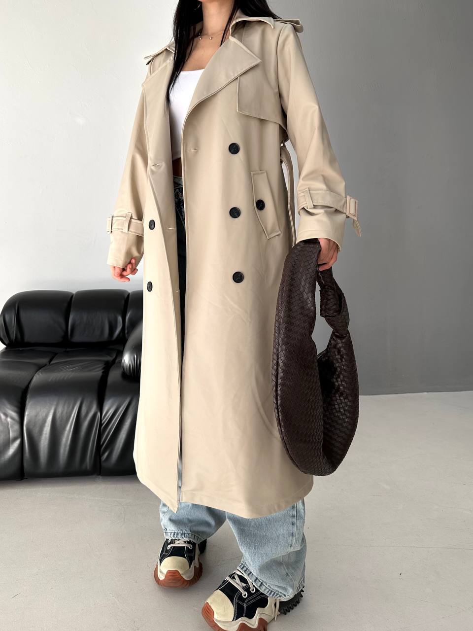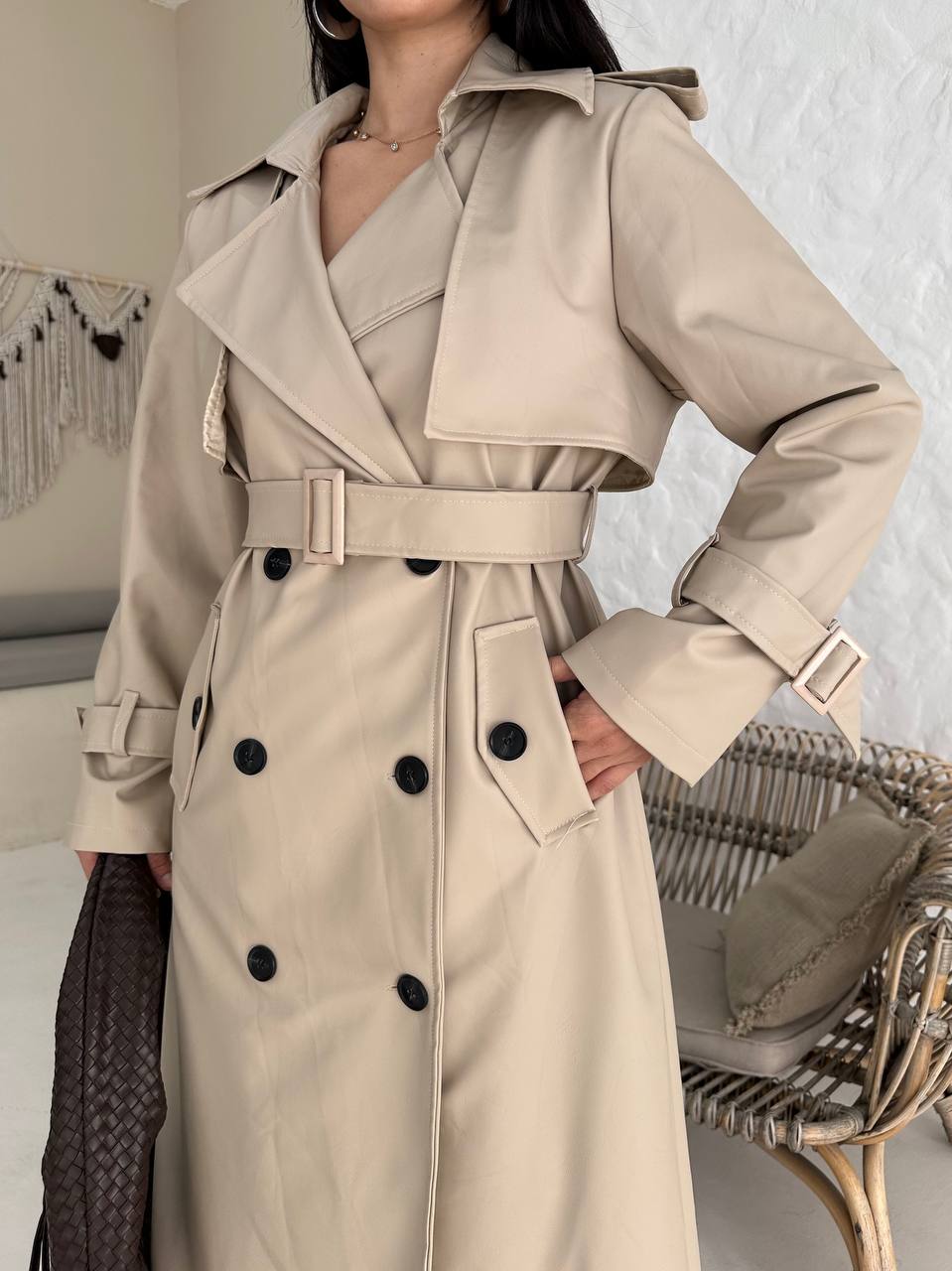Şıklığın ve konforun bir arada olduğu bu trençkot, klasik çizgisiyle sezonun vazgeçilmez parçası olmaya aday. Kuşak detayıyla belinizi vurgulayarak zarif bir siluet oluşturur.