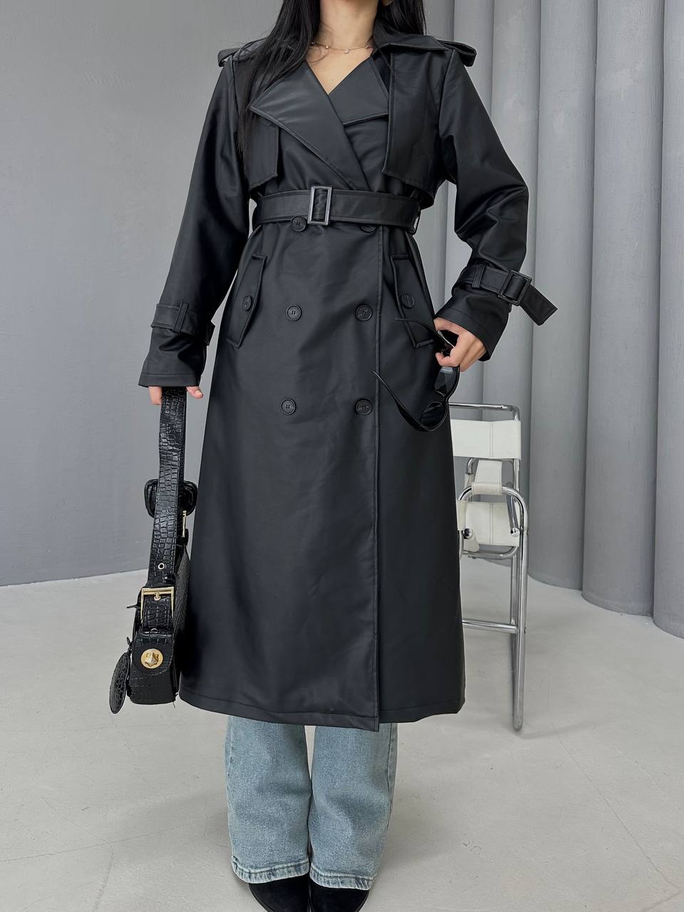 Kadın Klasik Kuşaklı Düğmeli Deri Trençkot