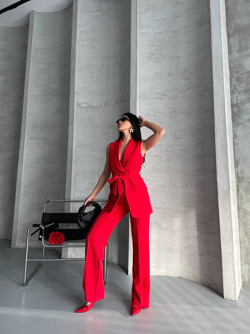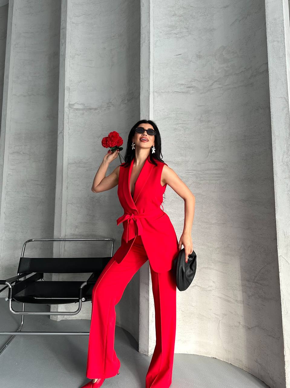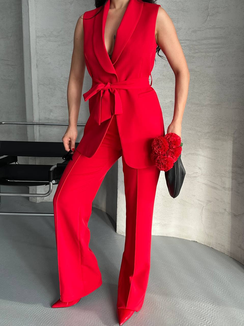 Kadın Kolsuz Kuşaklı Yelek Pantolon İkili Takım