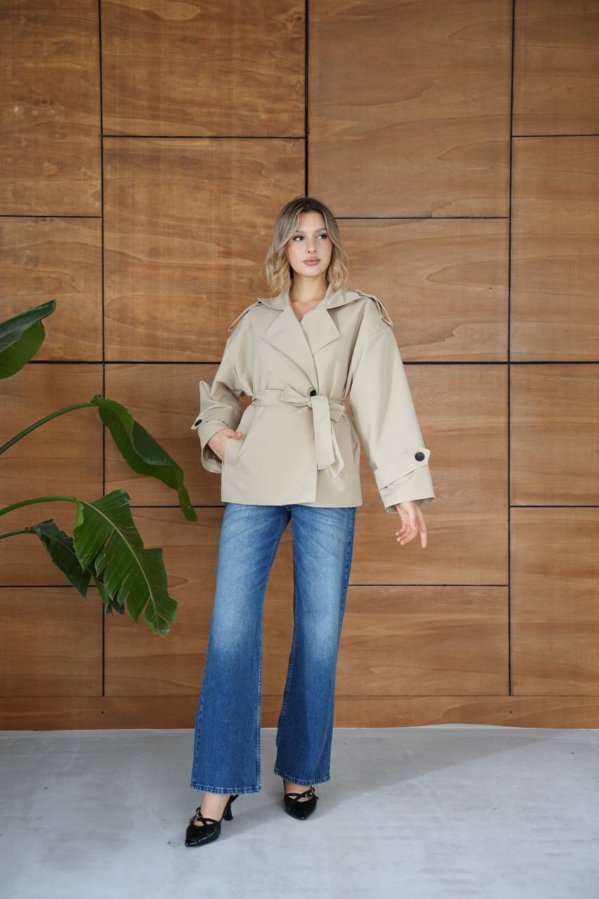 Kuşaklı kesimi sayesinde vücuda göre ayarlanabilir. Günlük stil için spor ayakkabılarla, klasik bir görünüm için topuklu botlarla kombinleyebilirsiniz.