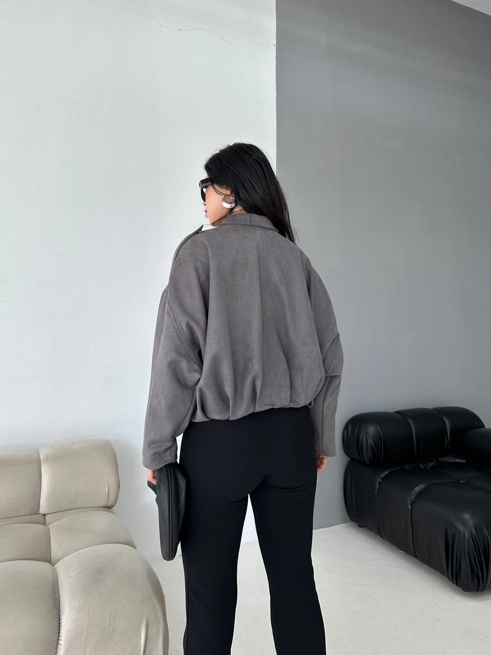 Kadın Oversize Düşük Omuz Süet Ceket
