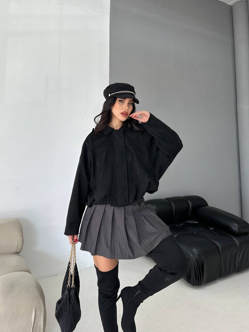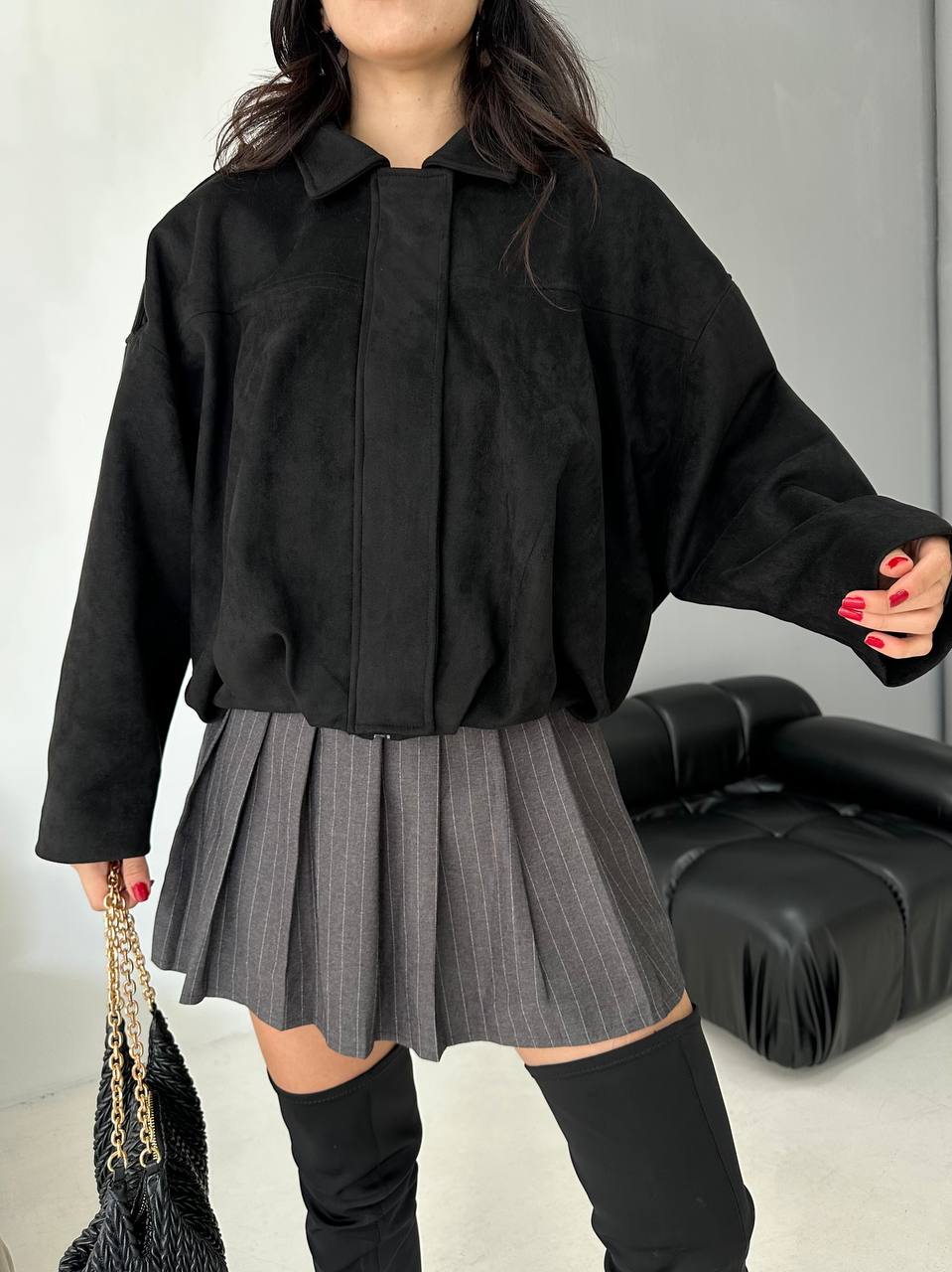 Yumuşak süet dokusu ve salaş kesimiyle konforu şıklıkla buluşturan bu gömlek ceket, sezonun en trend parçalarından biri. Günlük stilinize sıcak ve modern bir dokunuş katın.