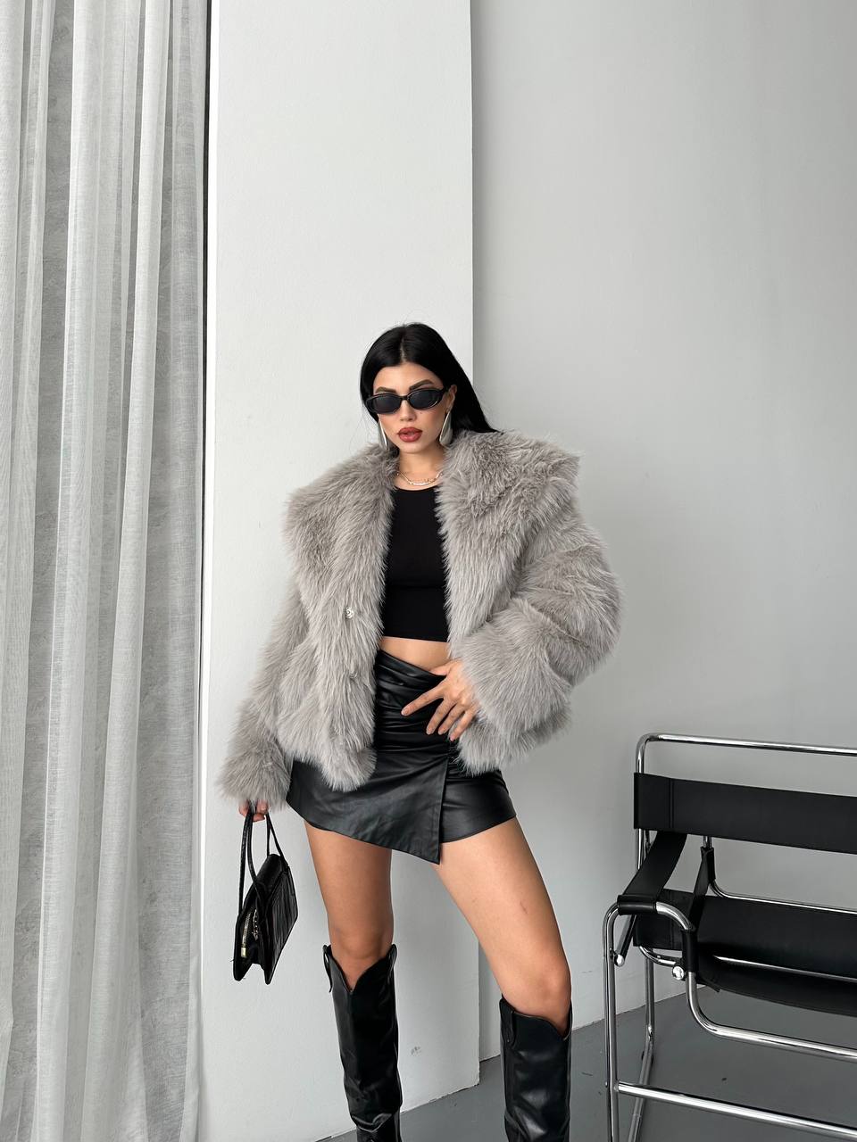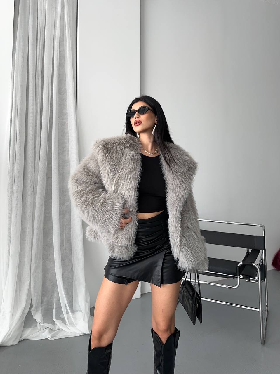 Kadın kürk görünümlü şık ceket, yumuşak dokusu ve modern kesimiyle hem günlük kombinlerde hem de özel davetlerde tarzınıza lüks bir dokunuş katar. Soğuk havalarda sıcak tutarken aynı zamanda stilinizi öne çıkarır.