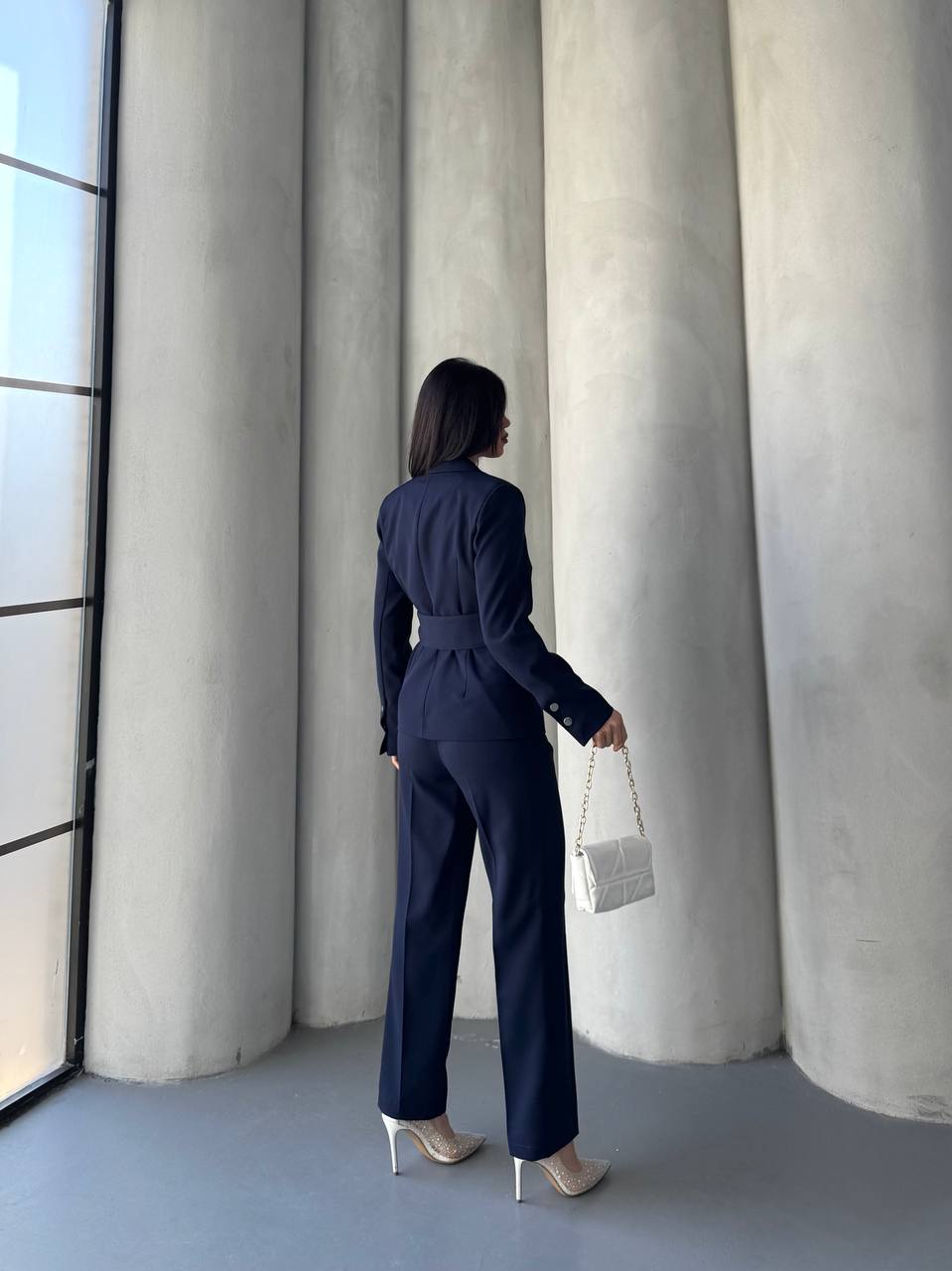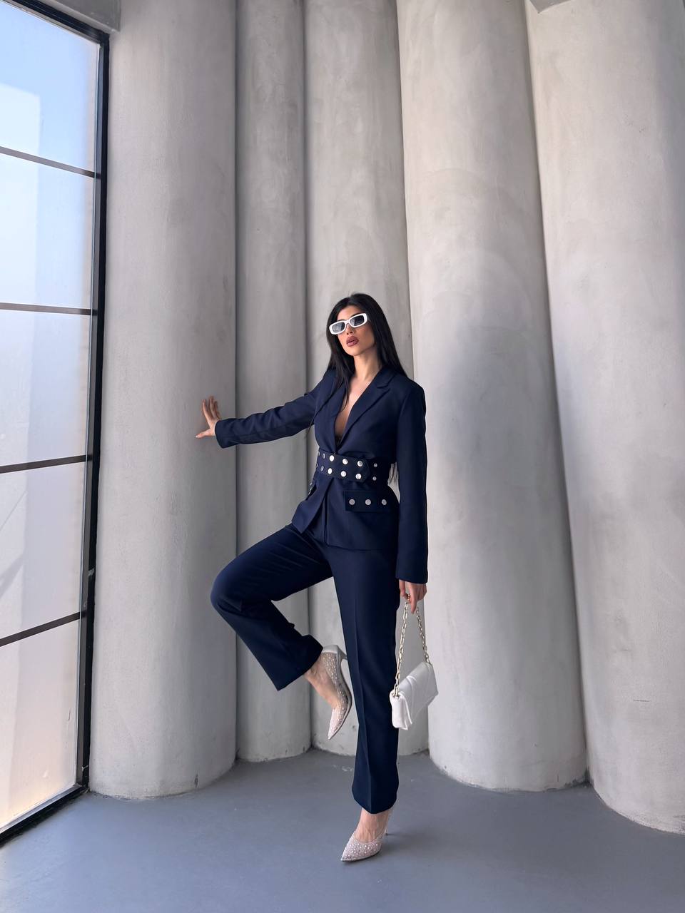 Kadın Zımba Kemerli Ceket ve Pantolon İkili Takım