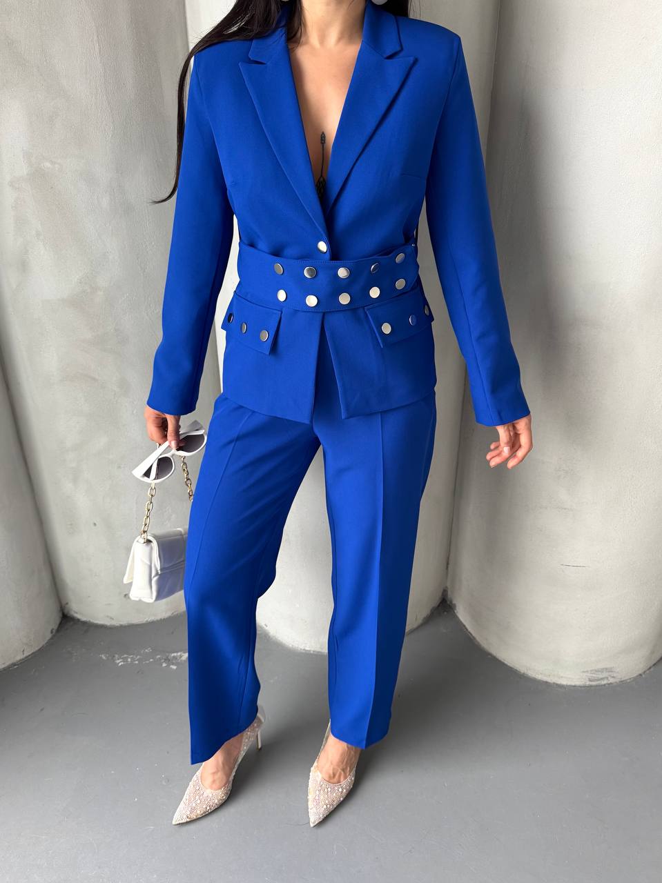 Kadın Zımba Kemerli Ceket ve Pantolon İkili Takım