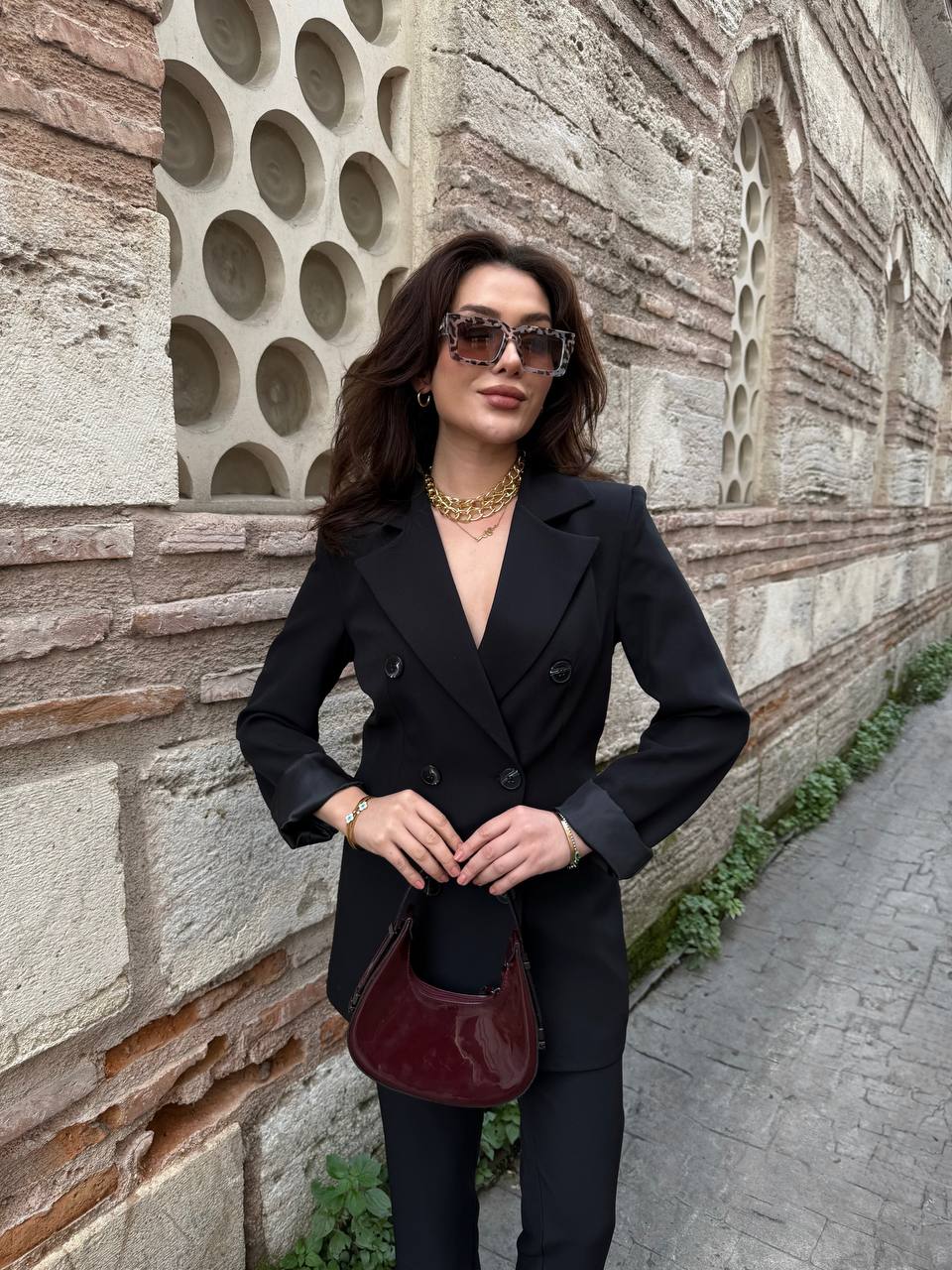 Kusursuz kesimiyle öne çıkan bu blazer ceket ve pantolon takımı, sade şıklığın en zarif hâlini sunuyor. Günlük ofis kombinlerinden özel davetlere kadar her ortamda stil sahibi bir görünüm sağlar.